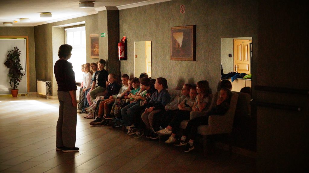 Podczas lekcji, którą poprowadził Mariusz Kozłowski, rozmawialiśmy o tajemnicach teatru — dekoracjach, scenografii oraz maskach!🎭
